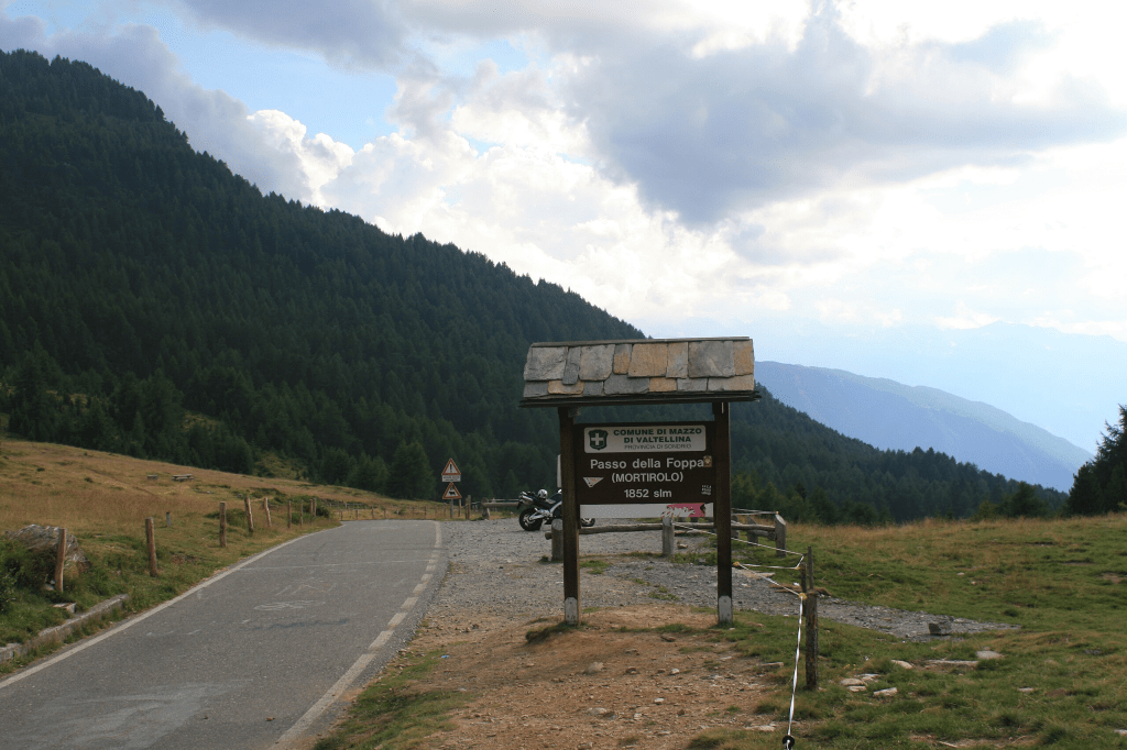 « La route est étroite, mais contrairement au Gavia les voitures parviennent à se croiser. Très peu de circulation en ce dimanche matin de fin août. Je n’ai pas trouvé la route dès le départ et ai pris un raccourci la rejoignant après 1km, un vrai mur ! Le col est annoncé moins difficile que par Mazzo, pourtant il propose à chaque kilomètre des rampes entre 12 et 16%. La différence est qu’il a de nombreux replats (ou adoucissements de pente) tout au long de l’ascension pour souffler. Ça reste néanmoins très raide en moyenne. »